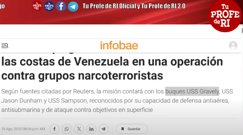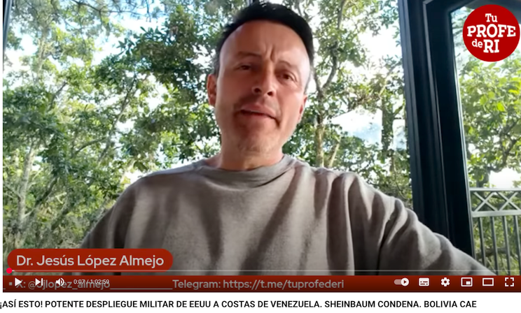 Miércoles, 20 de agosto de 2025. Opiniones y análisis del profesor Jesus Lopez Almejo sobre la situación de la presión que esta ejerciendo el gobierno de los Estados Unidos con la excusa de que se tarta de una acción contra el narcotráfico.