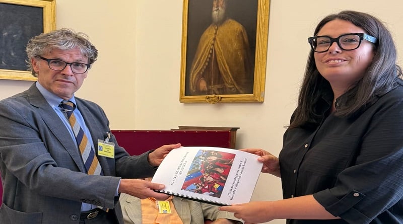 19 de septiembre de 2025.- El Parlamento de la República Italiana recibió cientos de firmas de la petición “Italia dice NO a la guerra contra Venezuela, ¡Sí a la paz en América Latina!”, suscrita por miles de ciudadanas y ciudadanos comprometidos con la defensa de la paz.