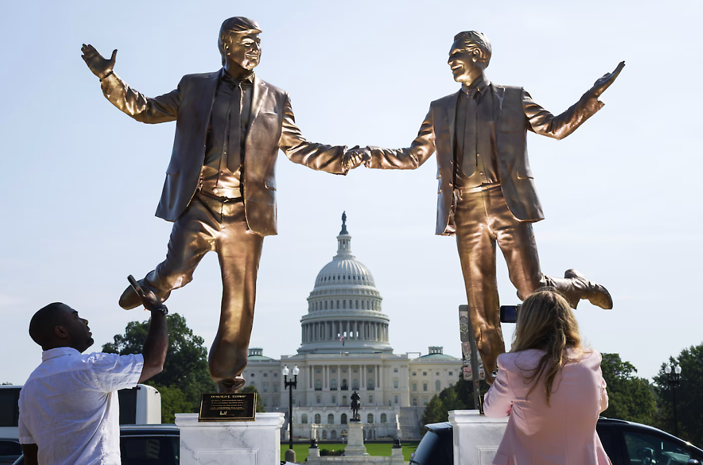 Estados Unidos: Grupo anómino coloca una estatua de Donald Trump y Jeffrey Epstein tomados de la mano en el Capitolio