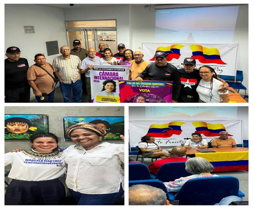 21 de octubre de 2025.- En el marco de su gira internacional, la precandidata a la Cámara de Representantes por la Circunscripción Especial para la Paz y la Circunscripción Internacional (Colombia Exterior), Marcela Martínez, sostuvo una reunión el sábado 18 de octubre en la biblioteca María Calcaño, donde participaron la coordinadora campesina étnica y popular, comunidades de Colombia en Maracaibo.