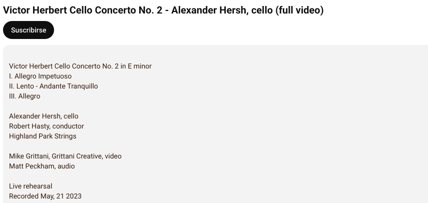 Sábado, 27 de diciembre de 2025.- Para los amantes de la música clásica ofrecemos, para que se relajen un poco en este fin de año, este ensayo del Concierto de Cello No 2 de Victor Herbert grabado el 23 de mayo de 2023