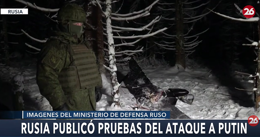 "El descifrado realizado por especialistas de los servicios especiales de la Federación Rusa del contenido de la memoria de los controladores de datos de navegación de los drones confirmó de manera inequívoca y precisa que el objetivo del ataque era el complejo de edificios del presidente de Rusia en la provincia de Nóvgorod", sostuvo.