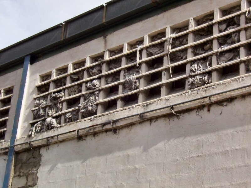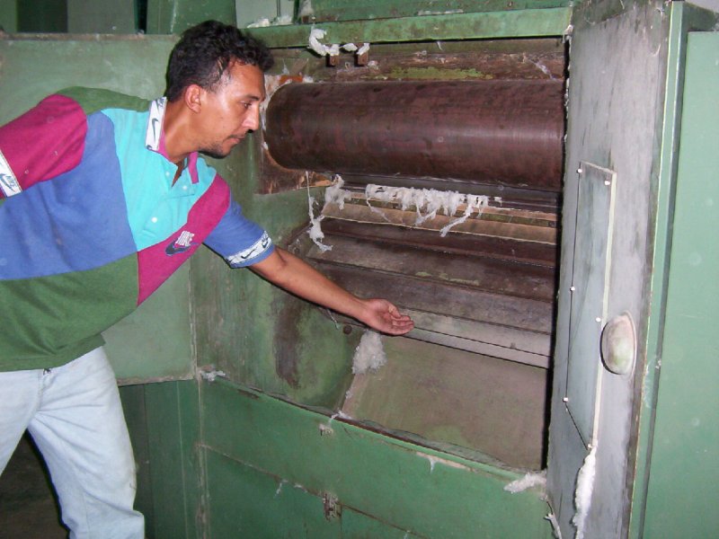 | El algodón que flota dentro de la planta, se deposita en los agujeros de ventilación. Los condiciones de trabajo éran precarias. |