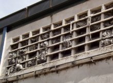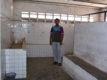 | El baño servía también como el comedor de los obreros. En el banco de la derecha se sentaban los obreros a comer. |