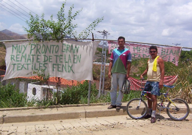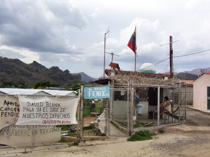 El pasado Domingo 20 de Abril de 2003, Aporrea tuvo un encuentro solidario con un grupo de trabajadores de Industrias Fénix en San Juan de Los Morros, estado Guárico. Estos trabajadores se vieron en la obligación de tomar la empresa de manera pacifica el año pasado, ante el cierre ilegal de la misma por parte del patrono, luego de la conformación de un sindicato por parte de los trabajadores ante la continua violación de derechos laborales, cese de pago de salarios y demás abusos patronales.