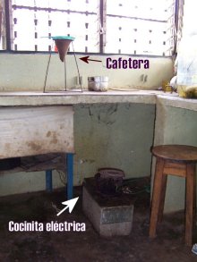 | La cocina de los obreros que montan guardia, está en pésimas condiciones. Donaciones de una neverita y una mejor cocinita no les caería nada mal. |