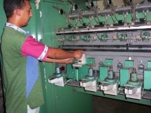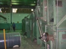 | Grandes máquinas procesan el algodón crudo y producen cuerdas gruesas para ser procesadas en otras máquinas. |