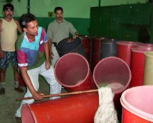 | La centrifuga hace un ruido ensordecedor. La falta de protección auditiva para los obreros, es una clara violación de códigos de seguridad industrial por parte del patrono. |