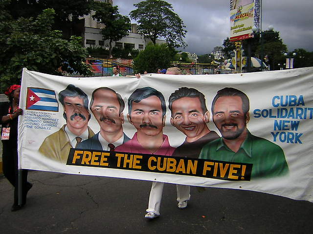 | Los cinco héroes cubanos presentes en la marcha Credito: Aporrea.org |