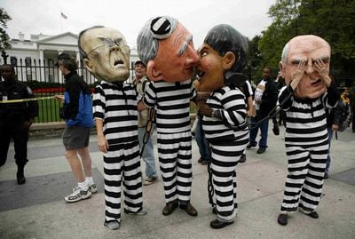 "Este gobierno está secuestrando a cientos, los desaparece y los tortura; hay cientos en Guantánamo y, tal vez miles, más en Irak, Afganistán y otros centros clandestinos de la CIA en el mundo", acusa Michael Ratner, presidente del Centro de Derechos Constitucionales. La ley que acepta la tortura y la anulación del habeas corpus "la llamo ley de Estado policiaco. Pueden ahora llegar por el vecino y detenerlo sin cargos, sin habeas corpus y llevarlo a ser torturado en instalaciones estadunidenses por todo el mundo. Esto es tiranía en el extranjero y tiranía en casa... Tenemos que resistir la autoridad ilegítima".