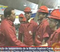Caracas, 30 de octubre de 2006. - El presidente de la República Hugo Chávez estuvo presente este lunes en el Acto de Lanzamiento de la Misión Vuelvan Caras Jóvenes e inauguró el Centro de Formación Técnica Socialista “Simón Rodríguez”, en la zona F del 23 de Enero, frente al estadio “Chato Candela”, en el municipio Libertador del Distrito Capital.