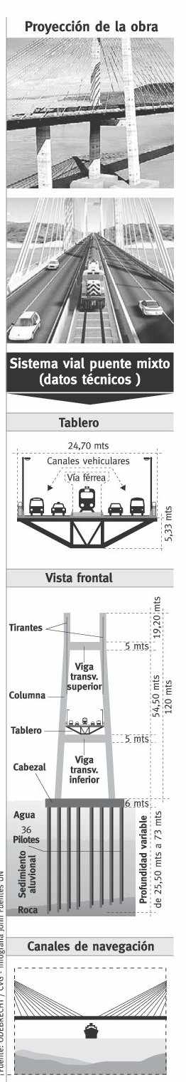Los otros tramos son: uno que conduce hacia Maturín, el cual tiene 35 kilómetros de largo, y una carretera que une el estribo sur del puente con la autopista Ciudad Bolívar-Ciudad Guayana. Valera comentó que la vía férrea que atraviesa el puente aún no está lista pero continúan con su construcción.