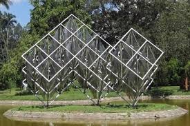 17. En el año 1974, en Venezuela, se inauguró en la Universidad Simón Bolívar la escultura Espejo Solar de Alejandro Otero. La escultura “Espejo Solar”, es una obra diseñada en proporción a la escala del espacio que ocupa. Se trata de una estructura metálica, como todas las piezas pertenecientes a la serie de las llamadas “Abras” del artista, y combina hierro estructural y algunos segmentos de acero inoxidable.