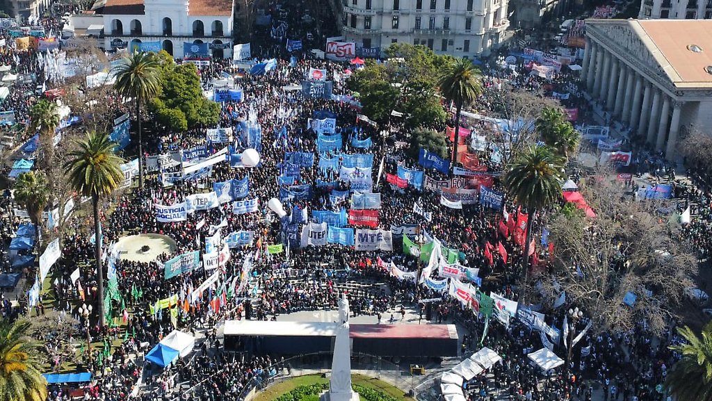El secretario general de la UTEP, Alejandro Gramajo, fue el encargado de cerrar los discursos con las críticas más duras hacia un Gobierno que «está generando la peor crisis humanitaria que haya vivido el país». La confluencia en las calles de los movimientos sociales con la conducción de las centrales obreras hizo pensar a muchos dirigentes en un punto de inflexión para la reanudación del plan de lucha contra el ajuste de Milei, que en el primer semestre del año tuvo dos paros generales. Algunos sectores sindicales se sienten ahora atraídos por los cantos de sirena de un diálogo con el Ejecutivo. No es el caso de los que marcharon este miércoles. «Argentina, con esta casta que nos gobierna, no tiene destino. Lo único que no queda es la confrontación. Este es un gobierno que ataca a los trabajadores y hay que confrontarlo en la calle y conformando un gran frente nacional para el año que viene, que nos permita tener mayoría en ambas cámaras. Hay que ponerle un freno, en la calle y en el Congreso”, concluyó Pablo Moyano.