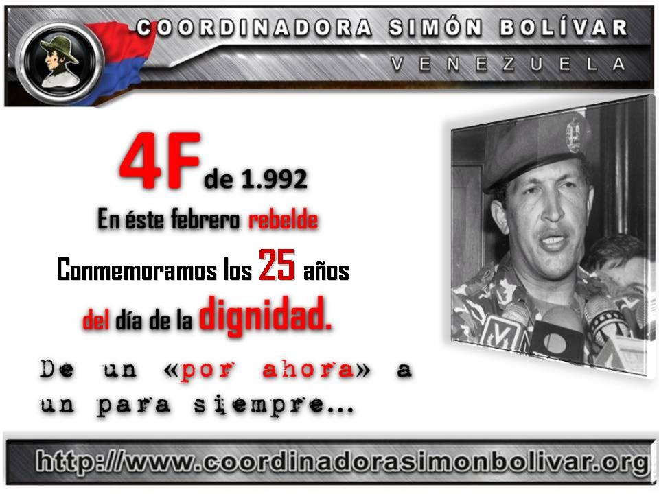 El alzamiento y la insurrección popular ocurridas el 27 y 28 de febrero de 1.989 fue el antecedente que dio origen a la rebelión militar del 4 de febrero de 1.992, y ambos acontecimientos dieron inicio a la Revolución Bolivariana, lo que significó la esperanza para Venezuela, América Latina y el mundo.