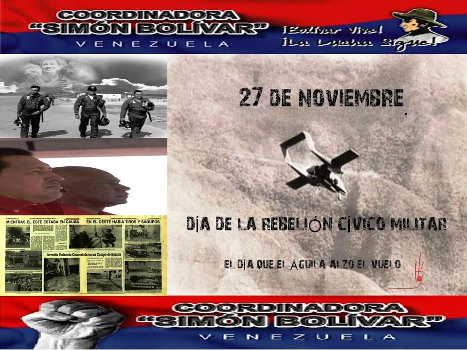 La Coordinadora Simón Bolívar conmemora los 26 años del 27 de noviembre como fecha histórica, donde participamos activamente para derrocar el gobierno burgués, represivo y corrupto de Carlos Andrés Pérez, asumimos las misiones dadas con decisión disciplina y valentía.