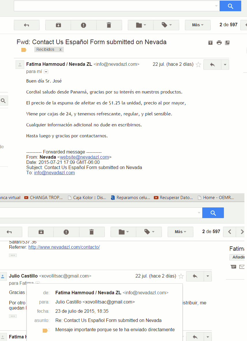A continuación les adjunto las imágenes de la interacción que tuvimos al correo: