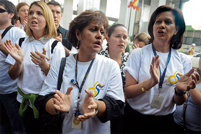 Caracas, 07 Dic. AVN .- Un grupo de empleados de la derechista Globovisión se presentó este martes en la sede de la Superintendencia de Bancos y Otras Instituciones Financieras (Sudeban) para manifestar en contra del pase a liquidación de la sociedad mercantil Sindicato Ávila, empresa que forma parte del Grupo Financiero Federal, propiedad del banquero prófugo Nelson Mezerhane.