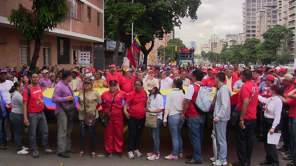 Frente a la sede de PDVSA, en la avenida Libertador de Caracas, se vio pasar un río humano que se dirigía a la vecina sede de Fedecámaras, a protestar contra del acaparamiento, en contra de Fedecámaras y en contra de la Guerra Económica que está padeciendo el pueblo, parte de la guerra de cuarta generación, con la cual las fuerzas conservadoras pretenden volver al poder.
