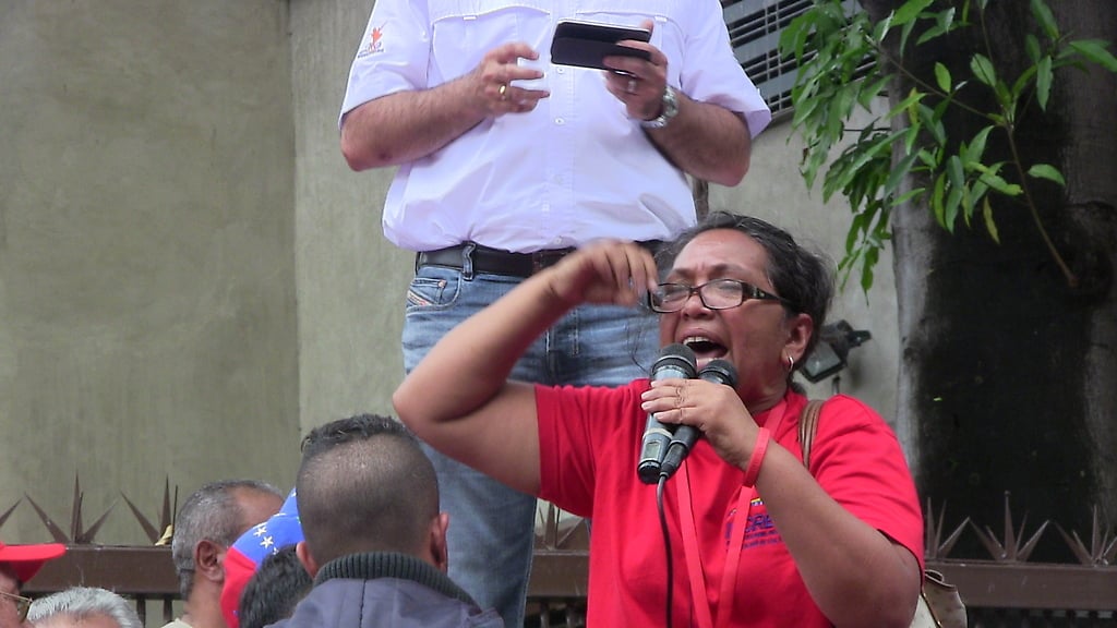 Por otra parte, oímos: "...y tu Fedecámaras, ten cuidado, porque el pueblo está alzado", dijo con énfasis Amada García del Frente Nacional de Campesinos y Pescadores Simón Bolivar y Coordinadora Ejecutiva de asuntos internacionales de la Central Bolivariana Socialista del Campo y de los Trabajadores de la ciudad, el campo y la pesca.