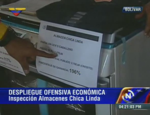 “Más de 135 multas por evidencias de irregularidades, se han decomisado más de 120 toneladas de cabillas y más de 100 toneladas de cemento que se han encontrado acaparadas en galpones. El comercio se había convertido en una estafa al pueblo”, informó el ministro de Estado para la Región de Desarrollo Integral Guayana (Redi-Guayana) y titular de la CVG, Carlos Osorio, quien se encuentra ejecutando las inspecciones en los almacenes de la tienda “Chica Linda”, tras detectar irregularidades con la particularidad de vender a crédito la mercancía para “duplicar y triplicar” las ganancias.