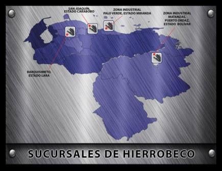 Hierro Beco posee cuatro sucursales en todo el territorio nacional. Éstas se encuentran ubicadas en: Barquisimeto, Estado Lara; San Joaquín, Estado Carabobo; Zona Industrial de Palo Verde, Estado Miranda y en la Zona Industrial Matanzas de Puerto Ordaz, Estado Bolívar.