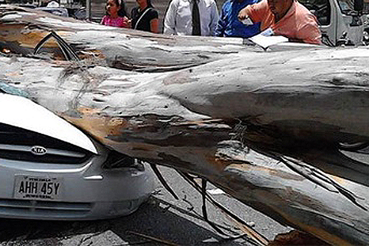 En la misma avenida, otro árbol, cayó sobre otro vehículo que minutos antes había estacionado su propietaria y quien apenas cruzaba la calle, desplazándose hacia el otro extremo de la avenida, desde donde fue testigo de la tragedia.
