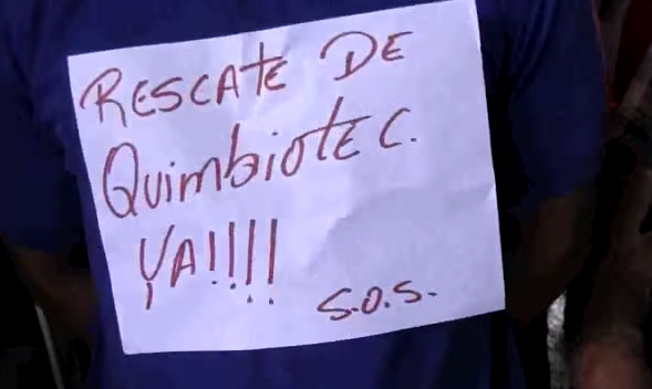 Miércoles,07 de octubre de 2015.- Yorman Amaya, trabajador de Quimbiotec el viernes dos señaló: ``Ahorita estamos pasando por una situación digamos que bastante crítica con respecto a nuestra planta, nosotros lo que estamos pidiendo acá hoy en día los trabajadores, es en principal la reanudación de la planta con respecto a los productos de hemoderivados sanguíneos...Quimbiotec es una industria farmacéutica que se basa en los hemoderivados sanguíneos, de allí nace lo que es la albúmina humana, el factor 8 humano, la himoglobulina humana, la anti D, la antitetánica y lamentablemente ahorita, como es del saber de todos, la planta se encuentra paralizada por una reestructuración que estaban haciendo allí y hasta el día de hoy no vemos la luz o claridad para empezar nosotros a realizar los medicamentos que muchos de esos pacientes allá afuera están necesitando´´
