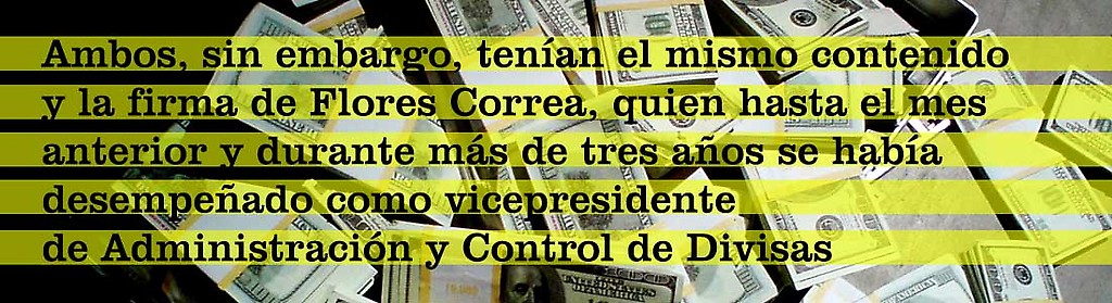 La investigación penal sobre las supuestas irregularidades en la Comisión de Administración de Divisas —Cadivi, actual Cencoex— comenzó el 16 de julio de 2013. A las 10 am. de ese día, el coronel del Ejército Víctor Armando Flores Correa compareció ante el director de Contrainteligencia Militar, mayor general Hugo Carvajal. De esa entrevista surgieron dos documentos: uno anónimo que fue utilizado para dar inicio formal al expediente y otro que fue consignado con posterioridad. Ambos, sin embargo, tenían el mismo contenido y la firma de Flores Correa, quien hasta el mes anterior y durante más de tres años se había desempeñado como vicepresidente de Administración y Control de Divisas.