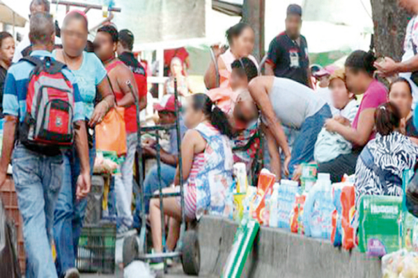 Algunos colocan lo empaques de jabón en polvo, azúcar o leche dentro de bolsas negras. Bajan las asas un poco para hacer más visibles los bultos a los posibles consumidores. Dos motos en las cuales se trasladan cuatro efectivos de la Guardia Nacional Boliviariana (GNB) pasan como un celaje verde por la calle Colombia.