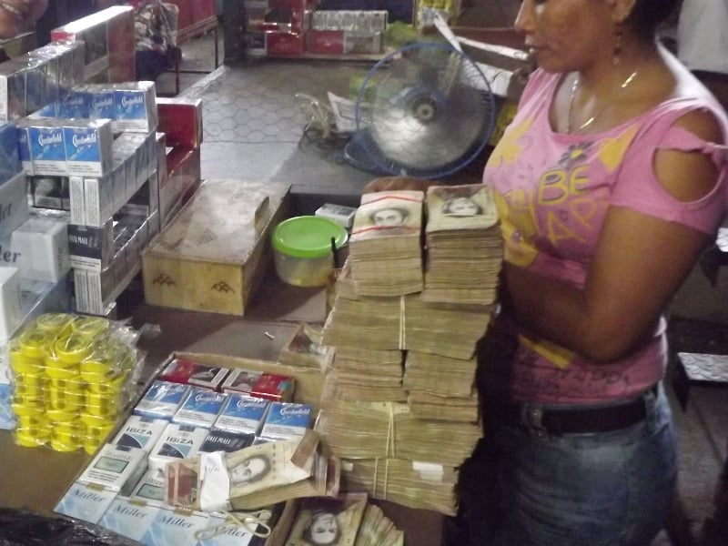 Fabricio Molero, de 48 años, trabaja con avances. Tiene un negocio de venta de cigarrillos y obtiene hasta 100 mil bolívares diarios en billetes, los cuales se convierten en Bs. 135.000 pues los vende al 35%. "Yo vendía la plata al 20%, pero los mismos clientes te hacen aumentar el porcentaje, a veces ni me dejan dormir: ‘chico, véndemelo a mi, yo te doy 25%, 30% o 35%’, me dicen y así van aumentando. Obviamente, yo no voy a dejar de ganar más. Me han ofrecido más del 40%", relata el comerciante.