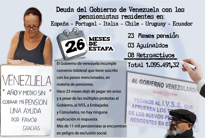 Son más de 11 mil afectados que se encuentran en España, Italia, Portugal, Chile, Ecuador y Uruguay. Gracias a un convenio bilateral de Venezuela con esos seis países, los venezolanos cobraban su pensión a través de la banca pública, en dólares -al cambio oficial- o en la moneda del país de residencia.