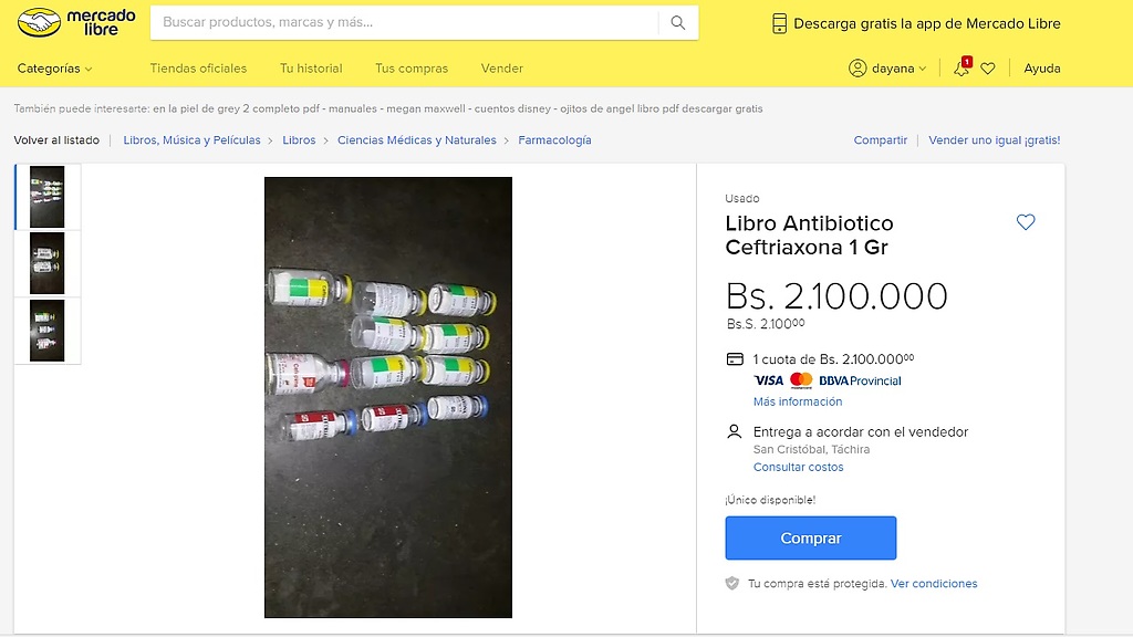 Sin embargo la lista de medicamentos que se ofertan en la plataforma de comercio electrónico es extensa, entre las cuales se encuentra la amoxicilina del Laboratorio Normon, con registro sanitario español, además el antibiótico no exhibe el permiso por ninguna autoridad venezolana.