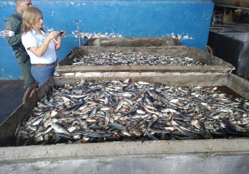 6 Nov. 2019 - Funcionarios de la Guardia Nacional Bolivariana (GNB) y de la Fiscalía de Sucre decomisaron un total de 3,5 toneladas métricas de sardina entera en la empresa Haripesca, la cual sería distribuida y utilizada para hacer harina ilegalmente en el contrabando de frontera.