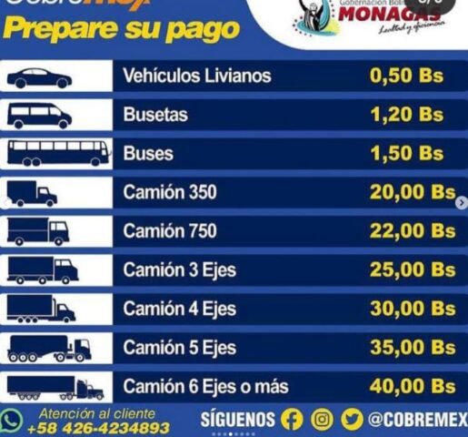 Agregaron que el cobro se ejecutará en Aragua (Villa de Cura, Las Tejerías), Monagas (Blanquero y El Tejero), Portuguesa (La Lucia, Boconoito y La Cascada), Lara (Simón Planas, La Libertad y Jacinto Lara), Falcón (Boca de Aroa, Los Médanos, Los Pedros y Maicillal), Anzoátegui (Potocos y Mesones).