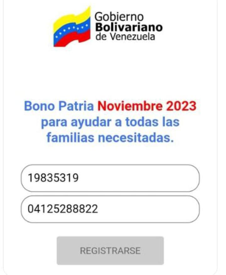 Usuarios de Telegram y Whatsapp alertan sobre un link a través del cual se les solicitan datos personales como número cédula de identidad y teléfono, con el cuento de: “Bono Patria Noviembre 2023 para ayudar a todas las familias necesitadas”.