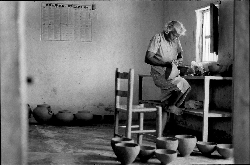 Francisca Rodríguez, la alfarera que encontramos amasando el barro. Foto Benito Irady. 1980
