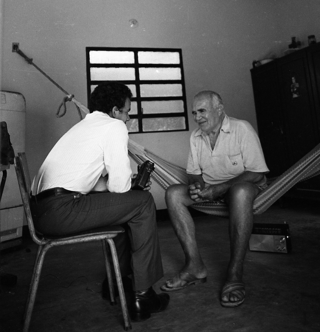 Cleto ahora percibe algo de luz a pesar de la ceguera por lesiones en sus lóbulos cerebrales. No puede discriminar los colores, su retina está perdida y por eso jamás ha identificado nuestro rostro. Como si estuviera viéndonos y para ser afectivo nos llama con una sonrisa “hijo de Dios”, en contraposición a otras palabras muy usuales en la isla de Margarita para nombrar a los que no tienen remedio, los “hijos del diablo”. Repite la frase bendecida muchas veces durante la conversación y la transforma en una mirada que nos reconoce. Trata de agrandar sus ojos debajo de las abundantes cejas negras que se mezclan en sus gestos. Se mece un poco en la hamaca ese primer día de 1975 cuando lo volvimos a visitar y se queja de los falsos profetas del pueblo, los llama “embusteros” por exponer una historia distinta a la que aconteció y va caracterizando perfectamente con su propia voz de guardados secretos los nombres de quienes estaban con él junto a la torre imantada desde aquel año 1932. No eran más de veinte nos dice y entre los primeros que nombra están el chofer José Capitillo, Ramón Lozada, Benjamín Barrios, Ruperto Calatrava, Goyo Hernández, Abelardo Ávila, Silverio González, Justo España, Concepción Cuello, Jesús Subero, Augusto Bermúdez, Luis Sánchez, un tal Chineco y un tal Conchón, Montanés, Parra, Villegas, Chori. Nombres completos o solo apellidos y apodos para mencionarnos al final a los dos primeros norteamericanos capataces del lugar Mister Gallo y Mister Bebe. “Todavía no había llegado al que se tiene como fundador de este pueblo, Mister Julio (Jully Mc Spaden) y ya los sismógrafos andaban por todas partes”. Nos cita entonces la presencia de un chino asimilado como chef de los norteamericanos que seguirían llegando al banco de sabana. Todos eran hombres.