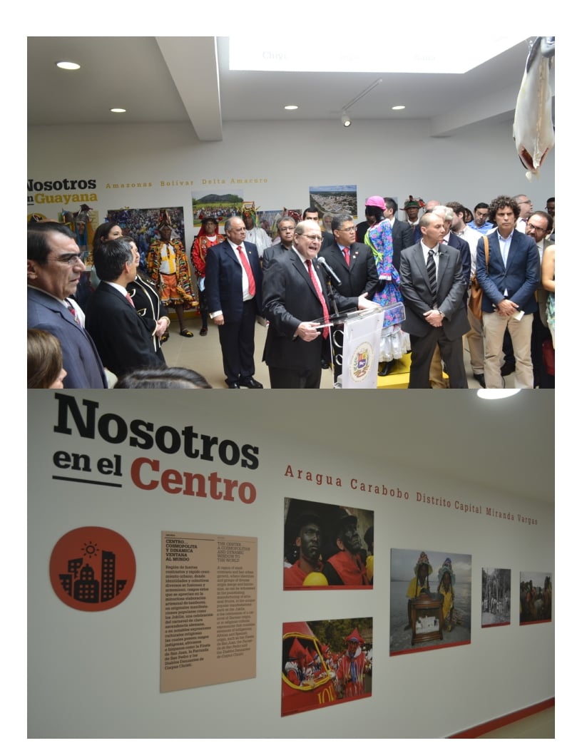 Casualmente, en aquellos días en Caracas, estaba fresca la huella de una exposición monumental, distribuida en tres salas del Museo de Bellas Artes. Se basaba en la riqueza de numerosas colecciones patrimoniales y en la obra de tantos investigadores que desde el año 1946 se juntaron aquí para estudiar la sabiduría de los pueblos de los que venimos, su espiritualidad, sus creaciones materiales, extraordinaria herencia que se atesora en el Centro de la Diversidad Cultural con sede en Caracas. Venezuela: Orgullo de ser y visión de futuro. Una muestra que contenía importantes textos geo-históricos y temáticos para explicar cómo en veintiocho lenguas distintas del país, dividido en seis grandes regiones, se mantiene viva una suma de tradiciones, poco conocidas por la mayoría de la población. Más de cuatrocientas fotografías, infografías varias, decenas de videos y una suma de testimonios complementaban la exposición con más de cuatrocientos objetos etnográficos de suprema esencia, contabilizando el arte popular, la artesanía, la cerámica, los ajuares, la economía doméstica, los equipos de labranza, de caza y de pesca, la indumentaria y los accesorios personales, juegos, juguetes, medicina, curación, salud, higiene, religiosidad, magia, ritual, tejeduría, transporte, acarreo, y lo más destacado de las colecciones, los instrumentos musicales de los pueblos originarios y de influencia hispanoárabe y africana.