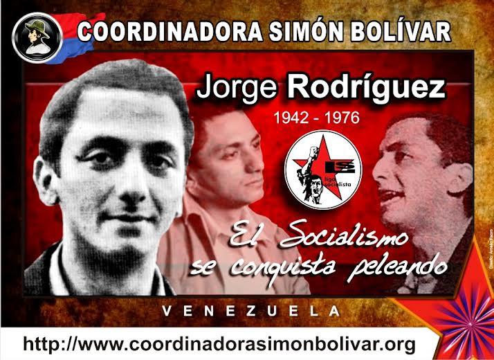 Éste 25 de julio al cumplirse el cuarenta y cuatro aniversario del lamentable e indignante asesinato de Jorge Rodríguez, durante el primer gobierno de Carlos Andrés Pérez, los militantes de la Coordinadora Simón Bolívar, quieren rendir tributo a este indoblegable luchador del Pueblo, trayendo a la memoria de las nuevas generaciones algunos rasgos de la trayectoria de vida de este valeroso soldado revolucionario.