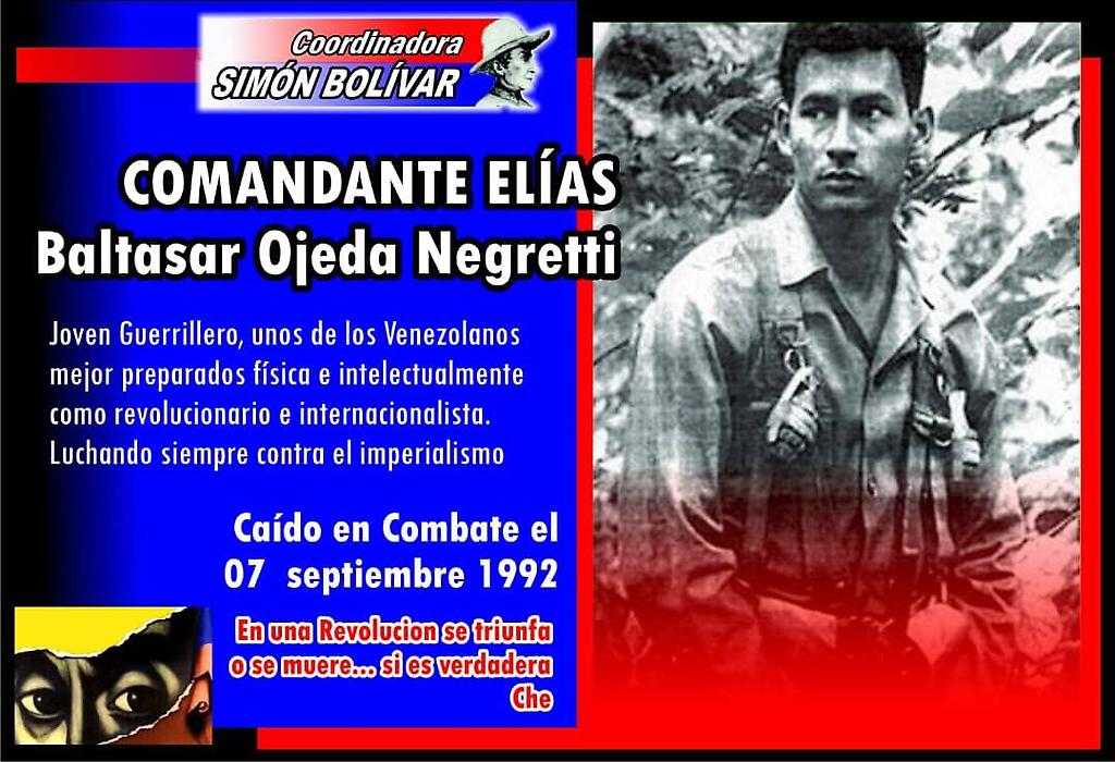 Hoy siete (07) de Septiembre de 2020, se cumplen veintiocho ( 28 ) años de la caída en combate por una Patria Buena, de la cual nos hablaba "el Panita" Alí Primera; el camarada y combatiente revolucionario Baltazar Ojeda Negretti, mejor conocido por los apodos de: "Ramón", "Balta" o "Comandante Elías".
