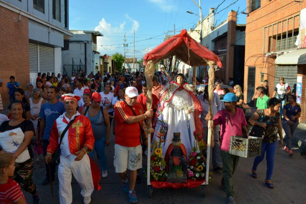 Manifestó Zeus que la crisis ha afectado esta tradición en cuanto al apoyo económico y agradeció a los comerciantes y particulares que siguen contribuyendo con la actividad, la cual insistió en que es patrimonio cultural de "El Manteco", una popular zona comercial, donde abundan tiendas de esoterismo, comercio al detalle, expendio de alimentos, antiguo motor económico de la ciudad de Barquisimeto, cuyo nombre proviene de la venta de manteca. Durante años hemos observado esta actividad; aunque es primera vez que escribimos sobre ella. Tenemos la percepción de que años anteriores participaron más personas, tal vez porque algunos seguidores de la Santa se fueron del país y la misma situación de Venezuela, afecta toda actividad que se realiza.