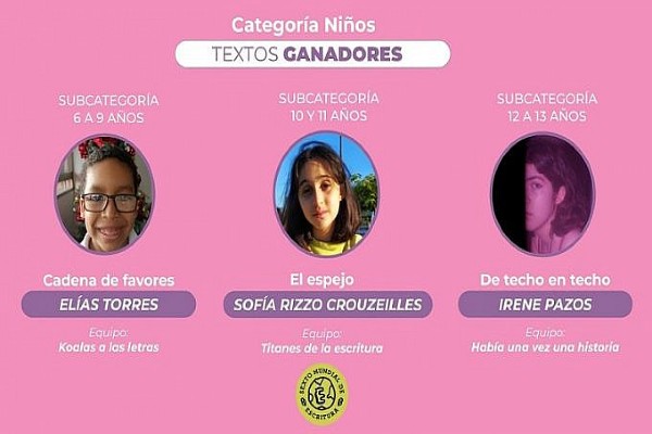 13.01.22 - El niño Elías Torres Anuel, de 8 años, con su relato «Cadena de favores», de carácter fantástico, fue el ganador de la categoría infantil (6 a 9 años) del VI Mundial de Escritura de Argentina, siendo el primer venezolano en titularse campeón en esta competencia.
