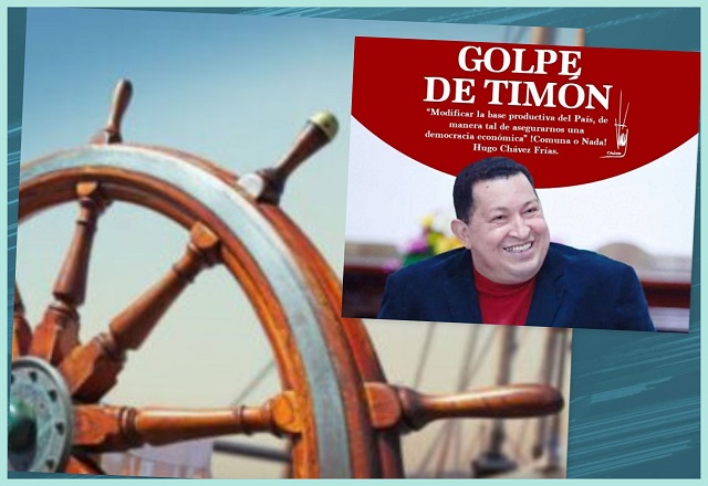 16. En 2012, el presidente venezolano Hugo Chávez propone el "Golpe de Timón". Hace una declaración pública titulada El Golpe de Timón, recogida en un breve texto, en el cual llama, entre otras cosas, al impulso de las comunas. El documento ofrece la visión del Presidente Chávez sobre lo que debía ser el "nuevo ciclo de la revolución bolivariana" y la orientación del gobierno durante el periódo 2013-2019. Contiene las palabras por él pronunciadas en la primera reunión del nuevo Consejo de Ministros (realizada el 20 de octubre), donde habló de la crítica y autocrítica, la eficiencia, la aceleración de la construcción de las comunas y el desarrollo del Sistema Nacional de Medios Públicos, entre otros temas de la construcción del socialismo, que anunció como primordiales para el próximo período presidencial. Para leerlo completo puede descargarlo aquí: Documento "Golpe de Timón" También puede leer algunos artículos publicados en Aporrea con análisis de su contenido o evaluaciones de lo que pasó con sus propuestas posteriormente: 1) ¿Para (no) olvidar el "Golpe De Timón"? - Javier Biardeau 04/08/13 - www.aporrea.org/ideologia/a171154.html 2) Un Golpe de Timón Chavista en la Venezuela de Hoy - Ricardo Adrián - 22/10/19 - www.aporrea.org/actualidad/a283633.html 3) Las elecciones parlamentarias, el Golpe de Timón y las 3R al cuadrado en la revolución bolivariana Ana Cristina Chávez – 07/12/15 - www.aporrea.org/ideologia/a218615.html 4) Del 27-F al Golpe de Timón: Consulta Popular como solicitó Chávez para blindar las decisiones contra lo Constituido - Juan García Viloria – 03/01/15 - www.aporrea.org/trabajadores/a200527.html 5) Maduro oyéndote, sentí bye Chávez y Golpe de Timón - Amaranta Rojas – 18/02/16 - www.aporrea.org/actualidad/a223127.html 6) El Golpe de Timón de Chávez: "Cuidado, si no nos damos cuenta de esto, estamos liquidados"Aporrea.org – 20/10/15 - www.aporrea.org/ideologia/n279527.html 7) ¿Liquidación o Golpe de Timón? Gonzalo Gómez Freire – 20/10/15 - www.aporrea.org/ideologia/a215790.html Desde entonces con cada aniversario de la propuesta del "Golpe de Timón" hay declaraciones oficiales que dicen asumirlo, como en 2020: "Hoy asumimos un nuevo Golpe de Timón para rectificar y darle respuestas a las necesidades del pueblo" https://www.aporrea.org/ideologia/n359752.html Pero, cuando nos situamos en el "barco", mirando desde la popa (desde atrás) hacia la proa (adelante), "babor" queda a la izquierda y "estribor" a la derecha... ¿Hacia dónde fue el golpetazo del timón?