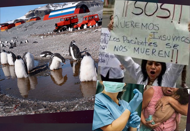 Credito: Composición de Aporrea con imágenes de la Web y foto de pingüinos, de Green Peace