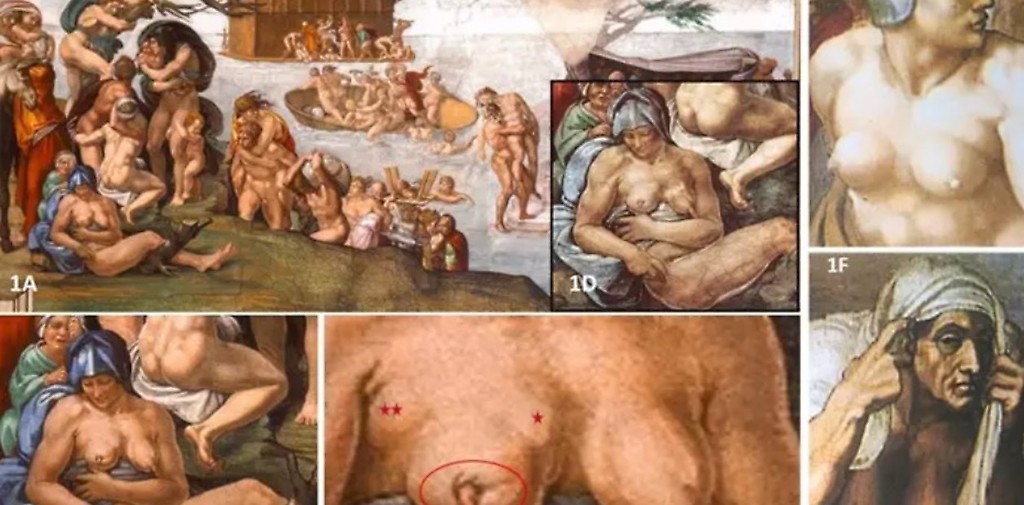 Las comparaciones con otras obras de Miguel Ángel revelan que, por supuesto, era bastante capaz de representar el pecho femenino sano. En las figuras femeninas de "El Juicio Final" y en esculturas como "Amanecer" y "Noche" de la Capilla de los Médici, los senos están representados con una simetría libre de signos patológicos, lo que refuerza la idea de que las anomalías en "El Diluvio" fueron deliberadas.
