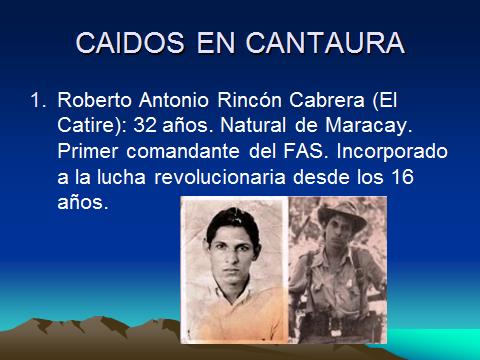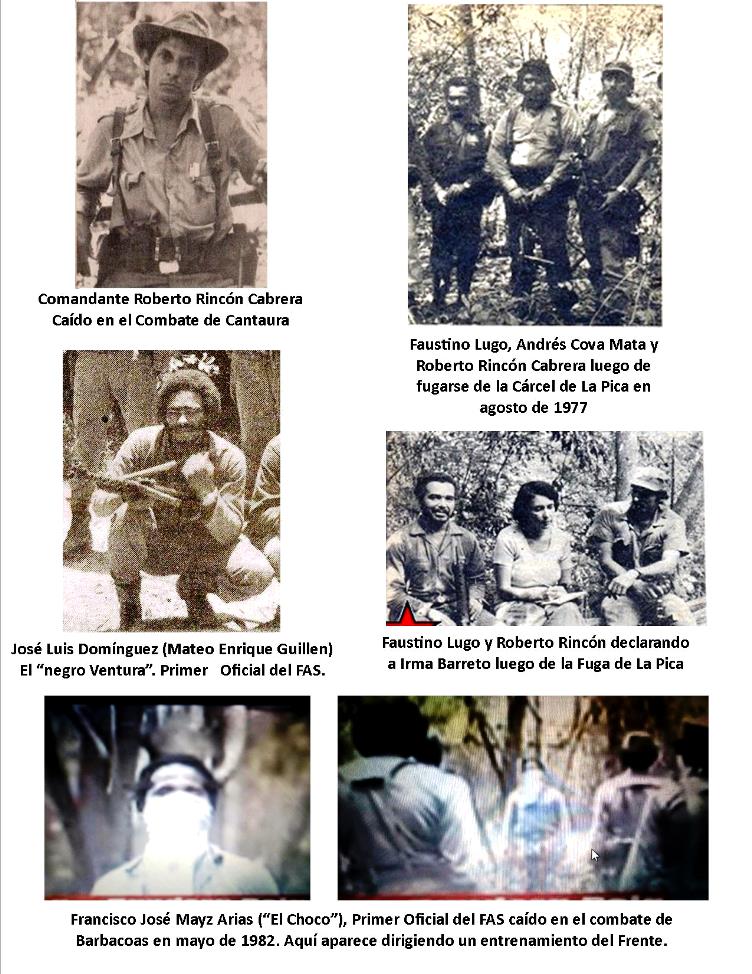 - Roberto Antonio Rincón Cabrera (El Catire): 32 años. Natural de Maracay. Primer comandante del FAS. Incorporado a la lucha revolucionaria desde los 16 años.