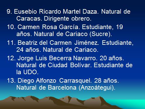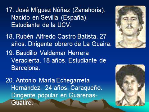 - Rubén Alfredo Castro Batista. 27 años. Dirigente obrero de La Guaira.
