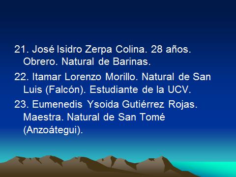 - José Isidro Zerpa Colina. 28 años. Obrero. Natural de Barinas.