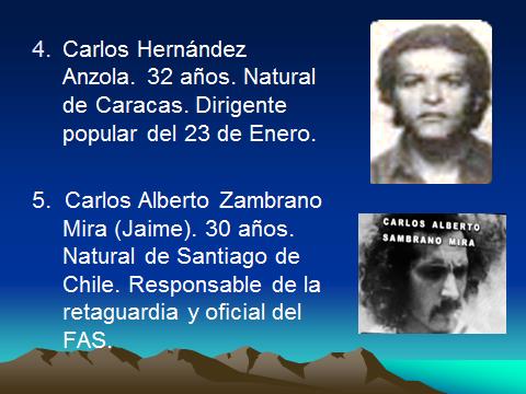 - Carlos Alberto Zambrano Mira (Jaime). 30 años. Natural de Santiago de Chile. Responsable de la retaguardia y oficial del FAS.